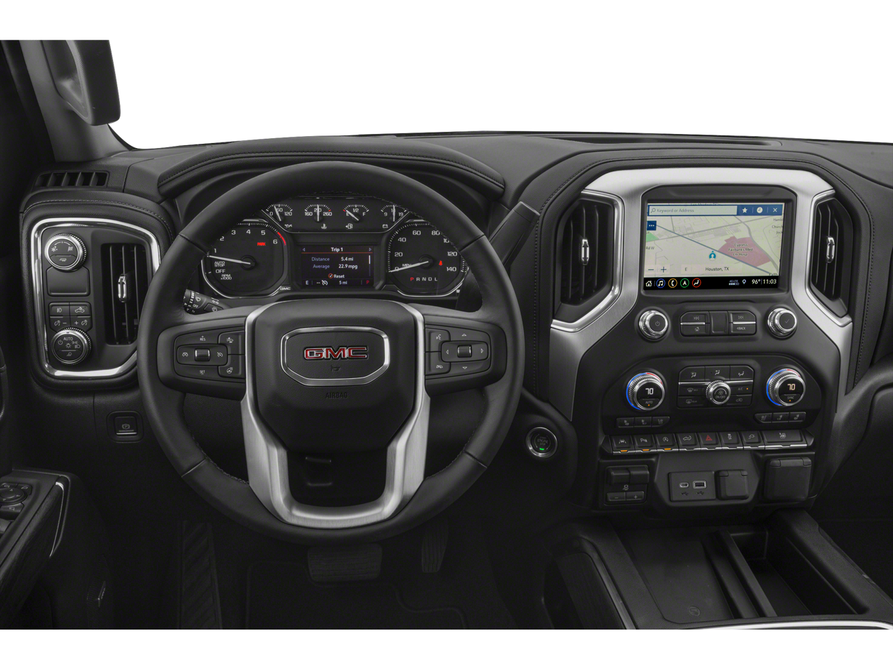 This 2021 GMC Sierra 1500 comes nicely equipped with Driver Alert Package I (Front Frame-Mounted Black Recovery Hooks, Lane Change Alert w/Side Blind Zone Alert, Perimeter Lighting, Rear Cross Traffic Alert, and Ultrasonic Front & Rear Park Assist), Preferred Equipment Group 4SA (12-Volt Rear Auxiliary Power Outlet, 120-Volt Bed Mounted Power Outlet, 120-Volt Instrument Panel Power Outlet, 170 Amp Alternator, 4G LTE Wi-Fi Hotspot Capable, Auto-Locking Rear Differential, Auxiliary External Transmission Oil Cooler, Chrome Grille, Color-Keyed Carpeting Floor Covering, Compass, Deep-Tinted Glass, Electric Rear-Window Defogger, Electrical Lock Control Steering Column, GMC Connected Access Capable, Heated Driver & Front Outboard Passenger Seating, Hitch Guidance w/Hitch View, In-Vehicle Trailering App, Integrated Trailer Brake Controller, Keyless Open & Start, LED Cargo Area Lighting, Manual Tilt-Wheel & Telescoping Steering Column, OnStar & GMC Connected Services Capable, Power Door Locks, Power Front Passenger Windows w/Express Up/Down, Power Front Windows w/Driver Express Up/Down, Power Rear Windows w/Express Down, ProGrade Trailering System, Rear Dual USB Charging-Only Ports, Rear Wheelhouse Liners, Remote Vehicle Starter System, Steering Wheel Audio Controls, and Theft Deterrent System (Unauthorized Entry)), SLT Convenience Package (2 USB Ports, 2 USB Ports (1st Row), Floor-Mounted Center Console, Front Bucket Seats, Heated 2nd Row Outboard Seats, Power Sliding Rear Window w/Rear Defogger, Universal Home Remote, and Ventilated Driver & Front Passenger Seats), Texas Edition SLT Premium Package (20 x 9 Polished Aluminum Wheels, Chrome Wheel To Wheel Assist Steps, and Texas Edition Badging), Trailering Package (Hitch Guidance), 8-Speed Automatic, Jet Black Leather, 10-Way Power Driver Seat Adjuster w/Lumbar, 10-Way Power Passenger Seat Adjuster w/Lumbar, 3.23 Rear Axle Ratio, 4-Wheel Disc Brakes, 6 Speakers, 6-Speaker Audio System Feature, ABS brakes, Air Conditioning, All-Weather Floor Liner (LPO), Alloy wheels, AM/FM radio: SiriusXM with 360L, Apple CarPlay/Android Auto, Auto-dimming door mirrors, Auto-dimming Rear-View mirror, Automatic temperature control, Brake assist, Bumpers: chrome, Delay-off headlights, Driver door bin, Driver Memory, Driver vanity mirror, Dual front impact airbags, Dual front side impact airbags, Electronic Stability Control, Front 40/20/40 Split-Bench Seat, Front anti-roll bar, Front Center Armrest w/Storage, Front dual zone A/C, Front fog lights, Front License Plate Kit, Front reading lights, Front wheel independent suspension, Fully automatic headlights, Heated door mirrors, Heated front seats, Heated steering wheel, Heavy Duty Suspension, Illuminated entry, Low tire pressure warning, Memory seat, Occupant sensing airbag, Outside temperature display, Overhead airbag, Overhead console, Panic alarm, Passenger door bin, Passenger vanity mirror, Perf Leather-Appointed Front Outboard Seat Trim, Power door mirrors, Power driver seat, Power passenger seat, Power steering, Power windows, Premium audio system: GMC Infotainment System, Radio data system, Radio: Premium GMC Infotainment Sys w/Multi-Touch, Rear reading lights, Rear seat center armrest, Rear step bumper, Rear window defroster, Remote keyless entry, Security system, SiriusXM w/360L, Speed control, Speed-sensing steering, Split folding rear seat, Spray-On Pickup Bed Liner w/GMC Logo, Steering wheel mounted audio controls, Tachometer, Telescoping steering wheel, Tilt steering wheel, Traction control, Trip computer, Variably intermittent wipers, Voltmeter, and Wheels: 18 x 8.5 6-Spoke Machined Aluminum.