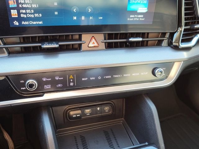 This 2023 Kia Sportage comes nicely equipped with 4-Wheel Disc Brakes, 8 Speakers, ABS brakes, Air Conditioning, Alloy wheels, AM/FM radio: SiriusXM, Apple CarPlay & Android Auto, Auto High-beam Headlights, Auto-dimming Rear-View mirror, Automatic temperature control, Axle Ratio: 3.648, Brake assist, Bumpers: body-color, Carpeted Floor Mats, Compass, Delay-off headlights, Driver door bin, Driver vanity mirror, Dual front impact airbags, Dual front side impact airbags, Electronic Stability Control, Emergency communication system, Four wheel independent suspension, Front anti-roll bar, Front Bucket Seats, Front Center Armrest, Front dual zone A/C, Front fog lights, Front reading lights, Fully automatic headlights, Garage door transmitter: HomeLink, harman/kardon® Speakers, Heated & Ventilated Front Bucket Seats, Heated door mirrors, Heated front seats, Heated steering wheel, Illuminated entry, Leather Shift Knob, Leather steering wheel, Low tire pressure warning, Memory seat, Navigation System, Occupant sensing airbag, Outside temperature display, Overhead airbag, Overhead console, Panic alarm, Passenger door bin, Passenger vanity mirror, Power door mirrors, Power driver seat, Power Liftgate, Power moonroof, Power passenger seat, Power steering, Power windows, Premium Leatherette Seat Trim, Radio: AM/FM/HD Audio System, Rain sensing wipers, Rear anti-roll bar, Rear reading lights, Rear seat center armrest, Rear window defroster, Rear window wiper, Remote keyless entry, Security system, Speed control, Speed-sensing steering, Split folding rear seat, Spoiler, Steering wheel mounted audio controls, Tachometer, Telescoping steering wheel, Tilt steering wheel, Traction control, Trip computer, Turn signal indicator mirrors, Variably intermittent wipers, Ventilated front seats, and Wheels: 19 Gloss Black Alloy.