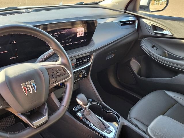 This 2024 Buick Encore GX comes nicely equipped with Preferred Equipment Group 1SD, 2 USB Ports (1 Type-A, 1 Type-C), 3.17 Final Drive Axle Ratio, 4-Way Manual Passenger Seat Adjuster, 4-Wheel Disc Brakes, 6-Way Manual Driver Seat Adjuster, 7 Speakers, ABS brakes, Air Conditioning, Alloy wheels, AM/FM radio: SiriusXM, Auto High-beam Headlights, Automatic temperature control, Brake assist, Bumpers: body-color, Compass, Delay-off headlights, Driver door bin, Driver vanity mirror, Dual front impact airbags, Dual front side impact airbags, Electronic Stability Control, Emergency communication system: OnStar and Buick connected services capable, Enhanced Performance 7-Speaker System w/Amplifier, Front anti-roll bar, Front Bucket Seats, Front Center Armrest, Front License Plate Bracket, Front reading lights, Front wheel independent suspension, Fully automatic headlights, Heated door mirrors, Illuminated entry, Knee airbag, Leatherette Seat Trim, Low tire pressure warning, Occupant sensing airbag, Outside temperature display, Overhead airbag, Overhead console, Panic alarm, Passenger door bin, Passenger vanity mirror, Power door mirrors, Power steering, Power windows, Radio data system, Radio: Audio System w/AM/FM, Rear reading lights, Rear side impact airbag, Rear window defroster, Rear window wiper, Remote keyless entry, Ride & Handling Suspension, Security system, SiriusXM, Speed control, Speed-sensing steering, Split folding rear seat, Spoiler, Sport steering wheel, Steering wheel mounted audio controls, Tachometer, Telescoping steering wheel, Tilt steering wheel, Traction control, Trip computer, Variably intermittent wipers, Wheels: 18 Gloss Black Aluminum, and Wireless Apple CarPlay/Wireless Android Auto.