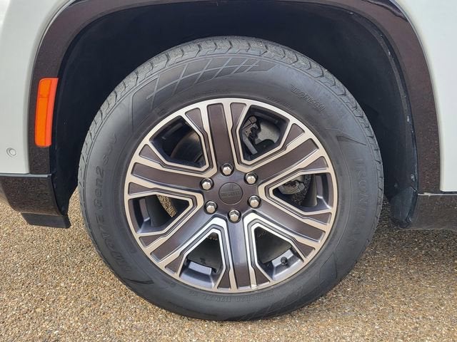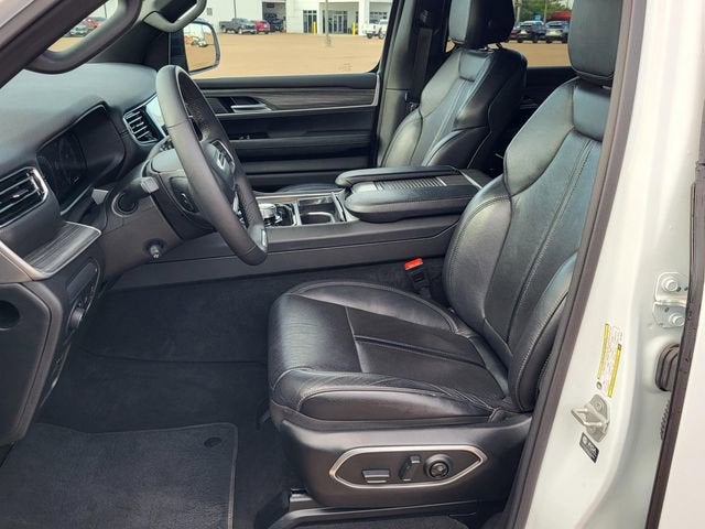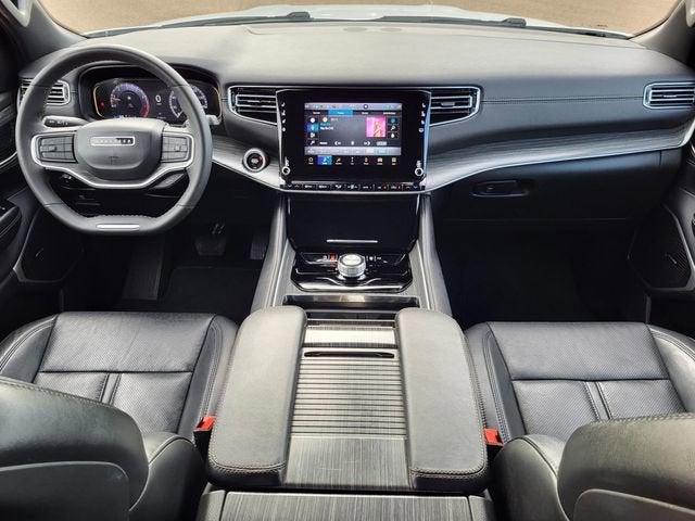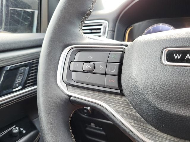 This 2024 Jeep Wagoneer L comes nicely equipped with Quick Order Package 25J, 10 Speakers, 3.55 Rear Axle Ratio, 3rd row seats: bench, 4-Wheel Disc Brakes, ABS brakes, Adjustable pedals, Air Conditioning, Alloy wheels, AM/FM radio: SiriusXM with 360L, Anti-whiplash front head restraints, Apple CarPlay/Android Auto, Audio memory, Auto-dimming door mirrors, Auto-dimming Rear-View mirror, Auto-leveling suspension, Automatic temperature control, Brake assist, Bumpers: body-color, Compass, Delay-off headlights, Driver door bin, Driver vanity mirror, Driver's Seat Mounted Armrest, Dual front impact airbags, Dual front side impact airbags, Electronic Stability Control, Emergency communication system: Wagoneer Connect, Exterior Parking Camera Rear, Four wheel independent suspension, Front anti-roll bar, Front Bucket Seats, Front Center Armrest w/Storage, Front dual zone A/C, Front fog lights, Front reading lights, Fully automatic headlights, Garage door transmitter, Genuine wood console insert, Genuine wood dashboard insert, Genuine wood door panel insert, Heated door mirrors, Heated front seats, Heated steering wheel, Illuminated entry, Knee airbag, Leather Trimmed Bucket Seats, Low tire pressure warning, Memory seat, Navigation System, Normal Duty Suspension, Occupant sensing airbag, Outside temperature display, Overhead airbag, Overhead console, Panic alarm, Passenger door bin, Passenger seat mounted armrest, Passenger vanity mirror, Pedal memory, Power adjustable front head restraints, Power door mirrors, Power driver seat, Power Liftgate, Power passenger seat, Power steering, Power windows, Radio data system, Radio: Uconnect 5 Nav w/10.1 Display, Rain sensing wipers, Rear air conditioning, Rear anti-roll bar, Rear reading lights, Rear seat center armrest, Rear window defroster, Rear window wiper, Reclining 3rd row seat, Remote keyless entry, Security system, Speed control, Speed-sensing steering, Speed-Sensitive Wipers, Split folding rear seat, Steering wheel memory, Steering wheel mounted audio controls, Tachometer, Telescoping steering wheel, Tilt steering wheel, Traction control, Trip computer, Turn signal indicator mirrors, Variably intermittent wipers, Ventilated front seats, Voltmeter, and Wheels: 20 x 9.0 Premium 2 Aluminum.