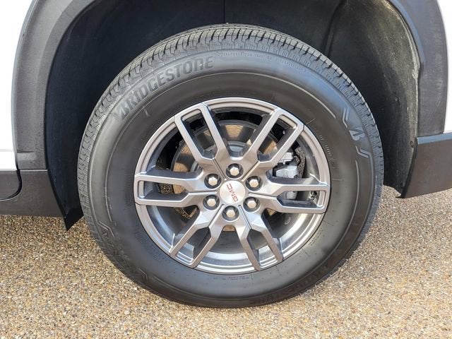 This 2025 GMC Acadia comes nicely equipped with Preferred Equipment Group 4SC, FWD, After Dark Cloth, 12 Speakers, 18 x 7.5 Aluminum Wheels, 2-Way Driver Power Lumbar Seat Adjuster, 3.49 Final Drive Axle Ratio, 3rd row seats: split-bench, 4-Way Manual Front Passenger Seat Adjuster, 4-Wheel Disc Brakes, 8-Passenger Seating (2-3-3 Seating Configuration), 8-Way Power Driver Seat Adjuster, ABS brakes, Air Conditioning, Alloy wheels, AM/FM radio: SiriusXM with 360L, Apple CarPlay/Android Auto, Auto High-beam Headlights, Auto-dimming Rear-View mirror, Automatic temperature control, Bodyside moldings, Brake assist, Bumpers: body-color, Cloth Seat Trim, Compass, Delay-off headlights, Driver door bin, Driver vanity mirror, Dual front impact airbags, Dual front side impact airbags, Electronic Stability Control, Emergency communication system: OnStar Services capable, Exterior Parking Camera Rear, Four wheel independent suspension, Front anti-roll bar, Front Bucket Seats, Front Center Armrest, Front dual zone A/C, Front fog lights, Front reading lights, Fully automatic headlights, Heated door mirrors, Heated front seats, Heated steering wheel, Illuminated entry, Leather steering wheel, Low tire pressure warning, Navigation System, Occupant sensing airbag, Outside temperature display, Overhead airbag, Overhead console, Panic alarm, Passenger door bin, Passenger vanity mirror, Power door mirrors, Power driver seat, Power Liftgate, Power steering, Power windows, Radio data system, Rear air conditioning, Rear anti-roll bar, Rear reading lights, Rear seat center armrest, Rear side impact airbag, Rear window defroster, Rear window wiper, Remote keyless entry, Security system, Speed control, Speed-sensing steering, Split folding rear seat, Spoiler, Sport steering wheel, Steering wheel mounted audio controls, Tachometer, Telescoping steering wheel, Tilt steering wheel, Traction control, Trip computer, Turn signal indicator mirrors, Variably intermittent wipers, and Voltmeter.